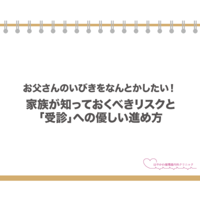 「夜中、お父さんのいびきがうるさくて眠れない」「時々、呼吸が止まっている気がして不安になる」——。当院には、ご家族の強い勧めで相談に来られる方が少なくありません。
