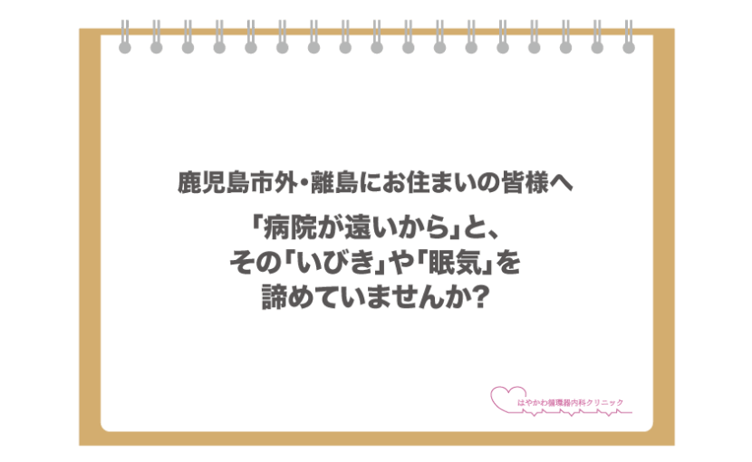 そんな症状があっても、「これくらいで鹿児島市内まで行くのは…」「フェリーや飛行機代、時間もかかるし」「悪天候だと移動も大変だ」と、受診をためらってはいらっしゃいませんか?